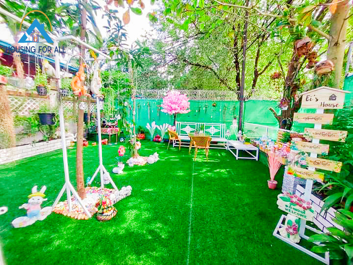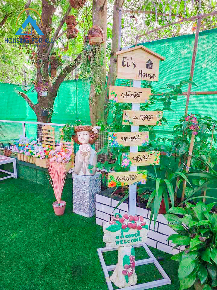 - ခြံရှေ့မှာ ပန်းအလှပင်စိုက်ထားတဲ့ အပန်းဖြေစရာ Mini Garden လေးလည်းရှိသေးတယ်နော်