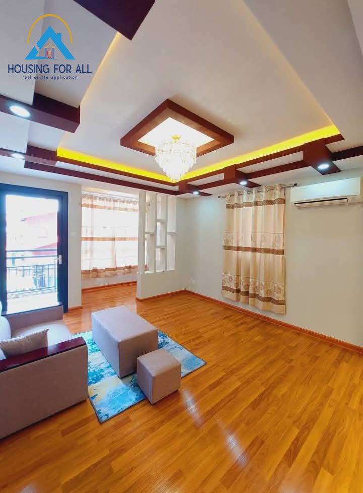 - ဆိုဖာ ဆက်တီများပါပြီး လိုက်ကာများ တပ်ဆင်ထားပြီး ၊ အဲကွန်း ၂ လုံး လည်း ပါပါတယ်