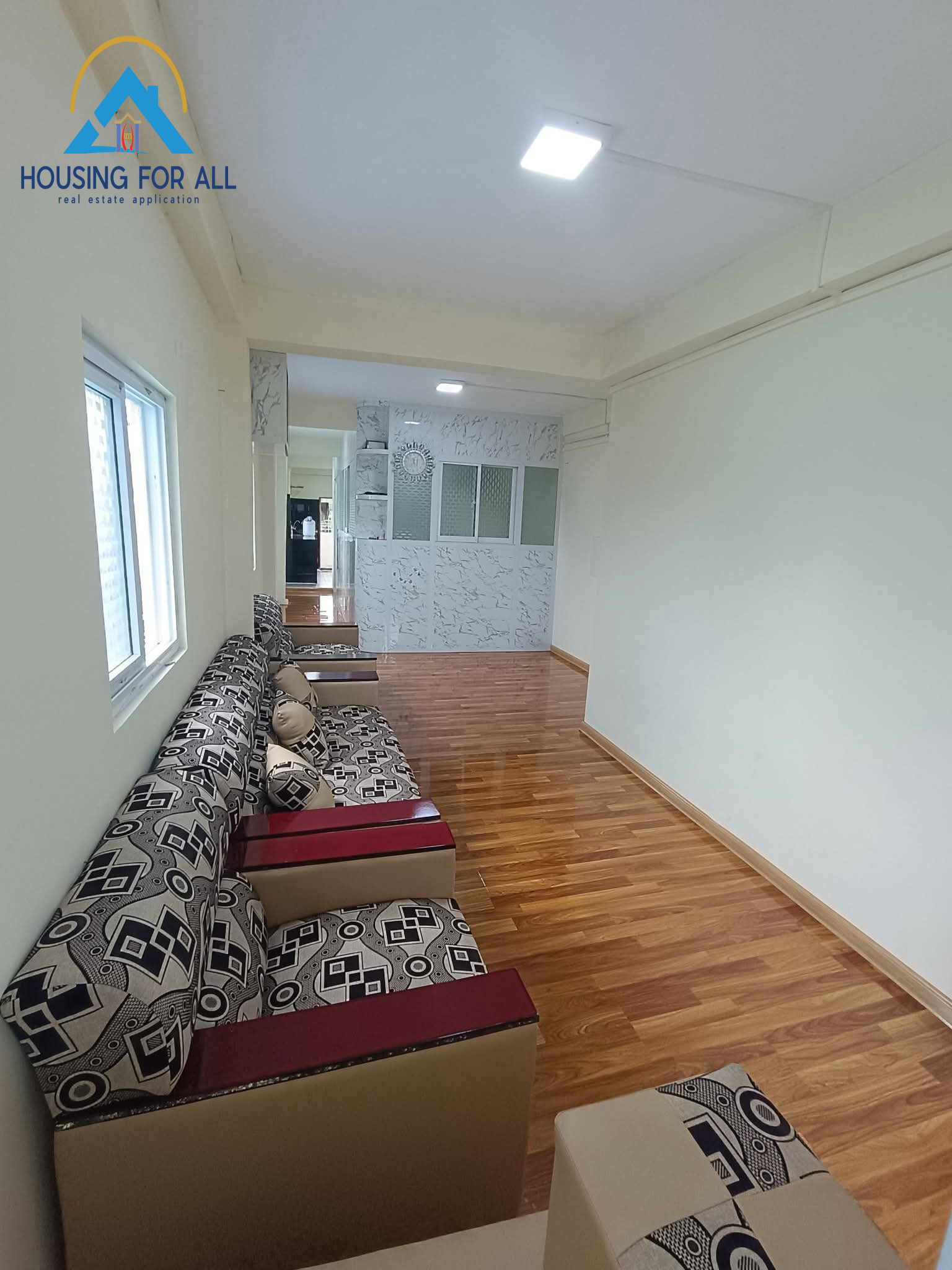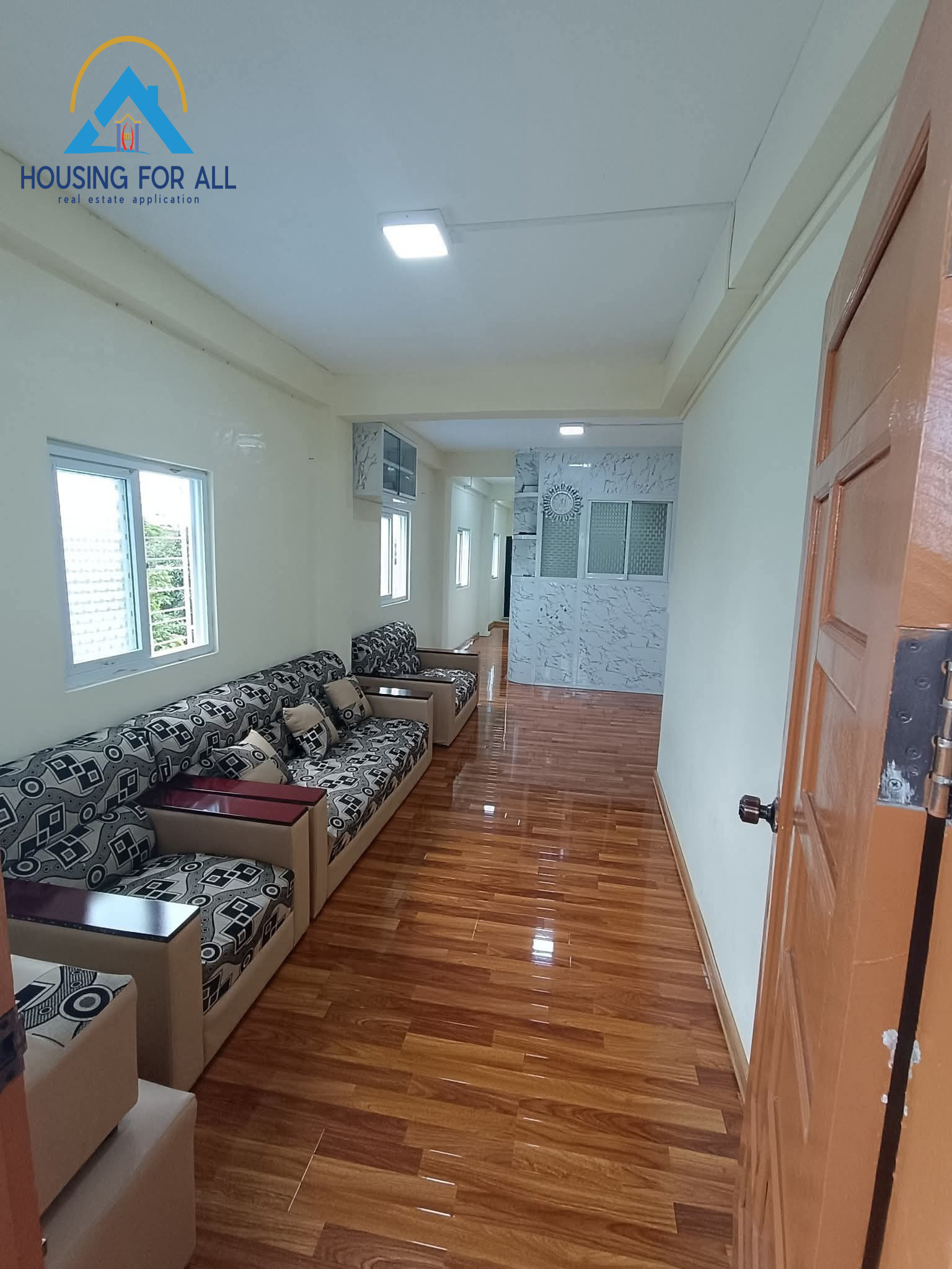 - အကျယ်ဝန်း ( ၁၂ × ၆၅ ပေ ) တစ်ခန်းလုံး အလုံးစုံ ပြင်စဥ်ပြီး တိုက်ခန်းအသစ် တတိယထပ် ( ၄ လွှာ ) တစ်မိုးအောက်