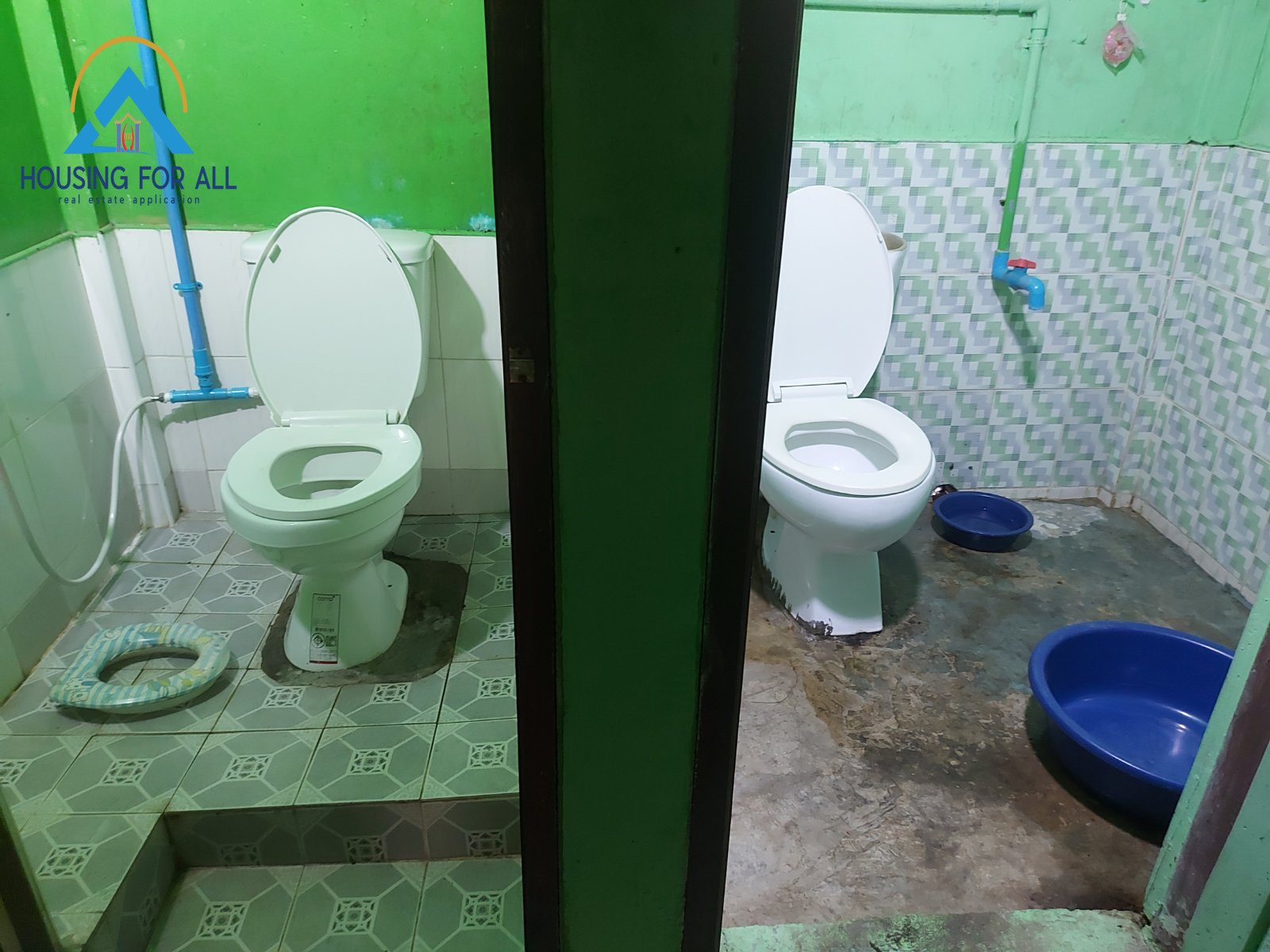 အိမ်သာ ဘိုထိုင် (၂) လုံး တစ်အိမ်လုံး ကြွေပြားခင်းပြီးသား